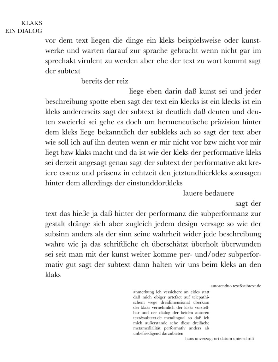 Hans Unverzagt: klaks, ein Dialog