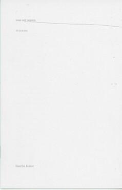 Sascha Kokot: was wir waren. 15 Gedichte. Hamburg (Carl-Walter Kottnik) 2021. 19 Seiten. 100 nummerierte Exemplare. Erhältlich via mail@saschakokot.de für 3,00 € (inkl. Porto).